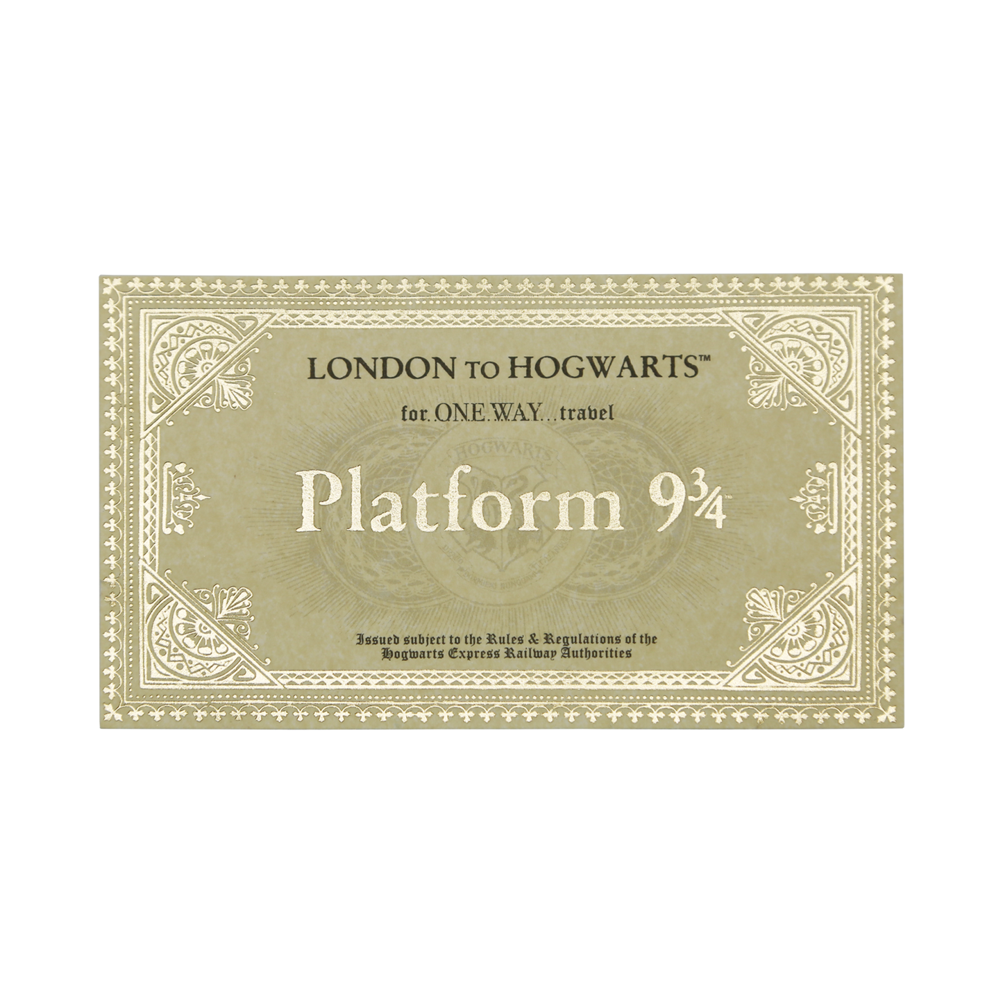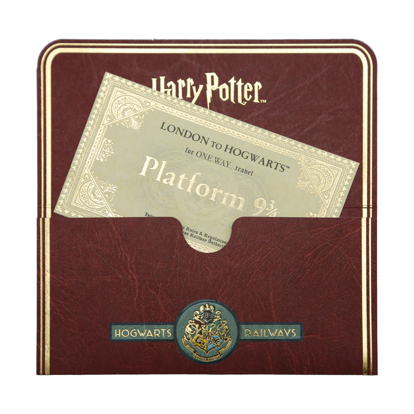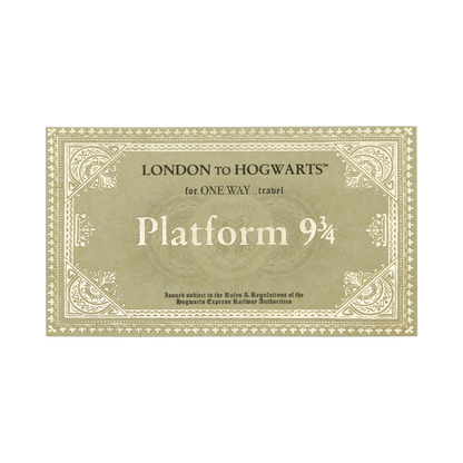 Take home your very own replica of the iconic Hogwarts Express Souvenir Ticket in this collectable display folder. The Hogwarts Express ticket is embellished with gold foil, and is based on the original artwork by MinaLima, the graphic duo, who designed all the original graphic elements for the Harry Potter films.
