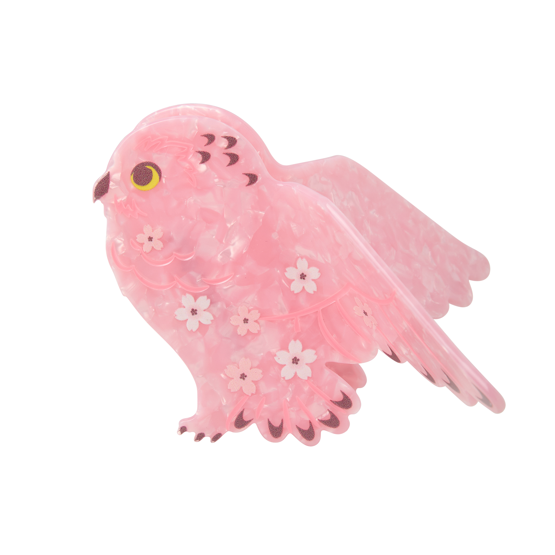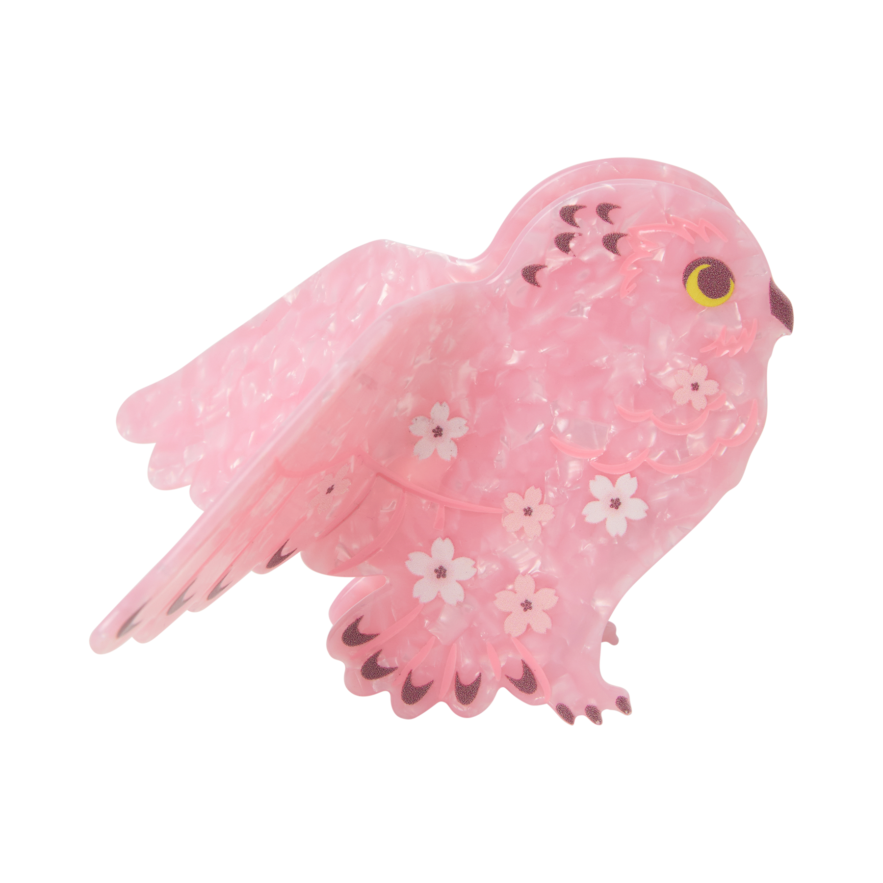 Cast a springtime spell with the Sakura Owl Hair Clip, a beautifully enchanted reimagining of Hedwig in soft pink hues. Crafted from smooth acetate with pearlescent highlights, this shimmering owl appears mid‑flight with her wings outstretched. Flecks of rosy glitter catch the light like tiny enchanted sparkles, transforming every movement into a moment of quiet magic.