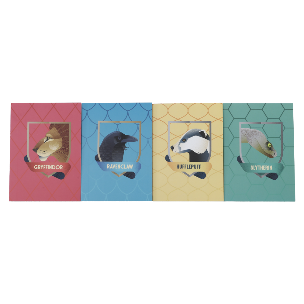 Celebrate your Hogwarts house pride with this colourful notepad set featuring the animal mascots of Gryffindor, Ravenclaw, Hufflepuff, and Slytherin.
