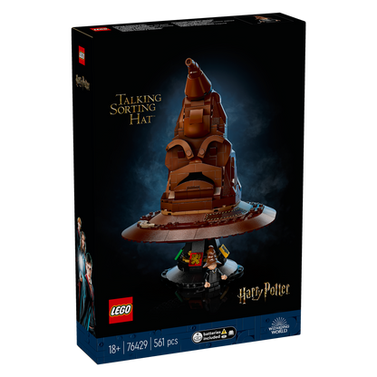 The LEGO Harry Potter Talking Sorting Hat measures over 9.5 in. (24 cm) high and 7.5 in. (19 cm) in diameter.