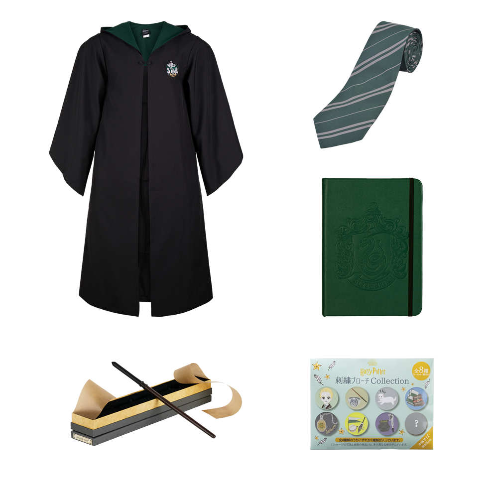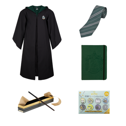 映画に忠実なスリザリンのローブとネクタイで変身を完成し、寮への誇りをアピールしましょう。エンボス加工されたレザー風のジャーナルに次の行動を計画し、スリザリンをテーマにしたピンが詰まった目隠し封筒で謎のスリルを味わいましょう。最後に、ドラコの杖を振り回せば洗練された呪文を練習するのに最適なレプリカセットです。