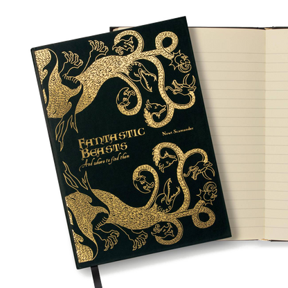 黒の背景に金の箔押しが施された美しい装丁は、まるで魔法動物の図鑑そのもの。約200ページの横罫入りで、黒いリボンしおり付き。魔法動物の観察記録や、日々の冒険を書きとめるのにもぴったりです。ニュートのように、あなたも未知の魔法動物との出会いを記録してみませんか?