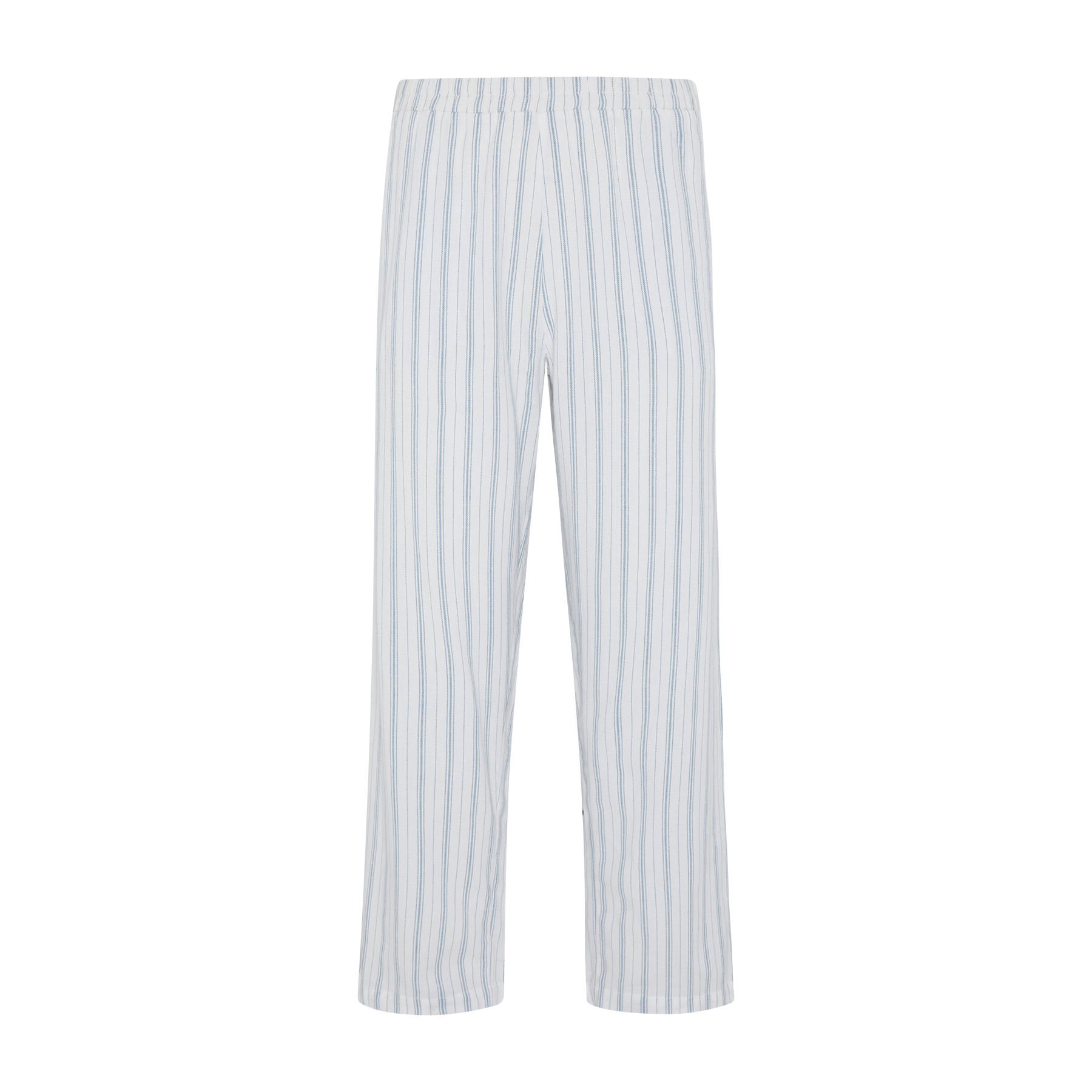 セットのパンツは、100%コットンのブルー×ホワイトのストライプ柄。クラシックで温かみのあるデザインは、クリスマスの朝や映画鑑賞、暖炉のそばでのリラックスタイムにぴったりです。ハリー・ポッターファンへのギフトとしてもおすすめのアイテムです。