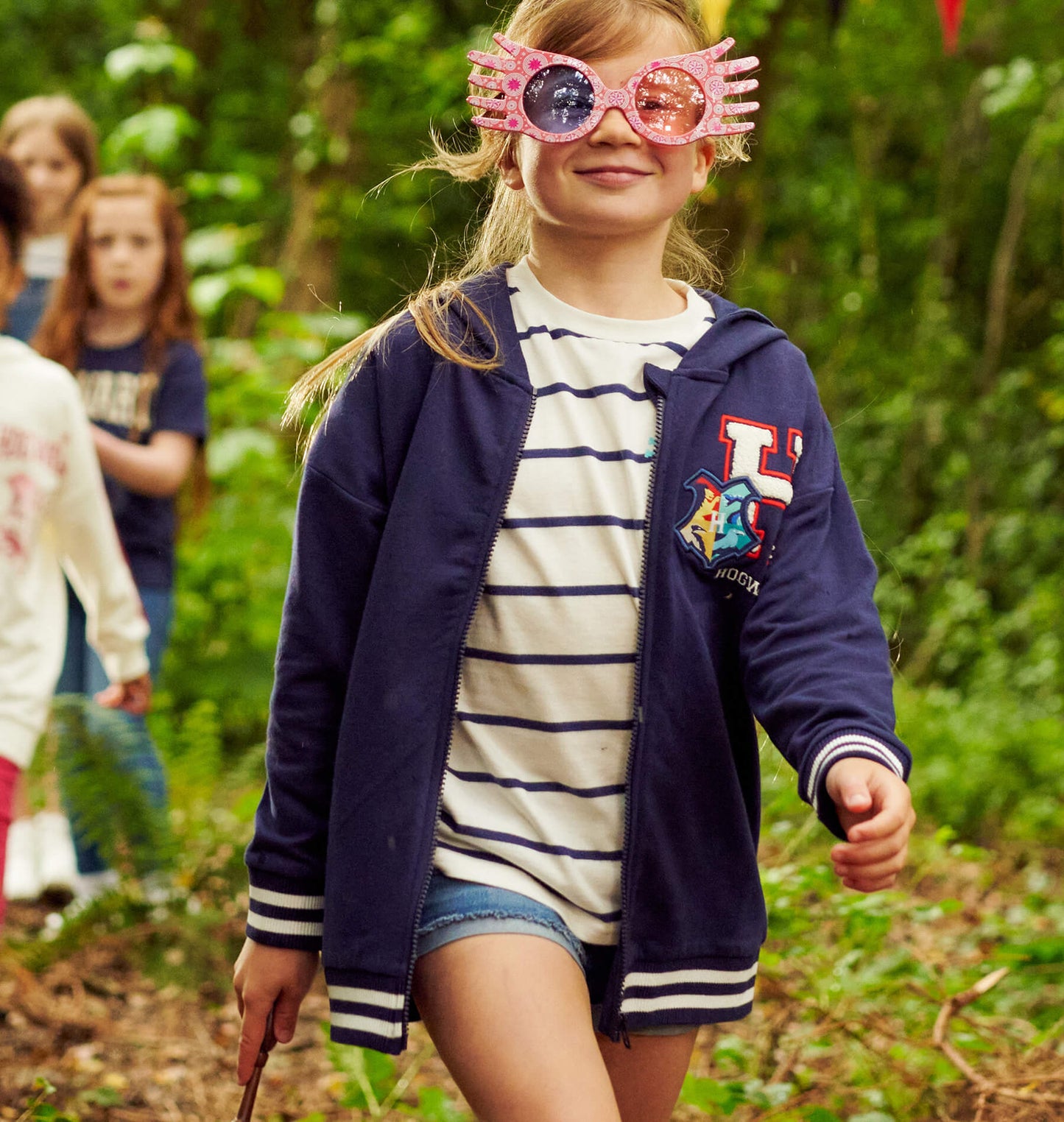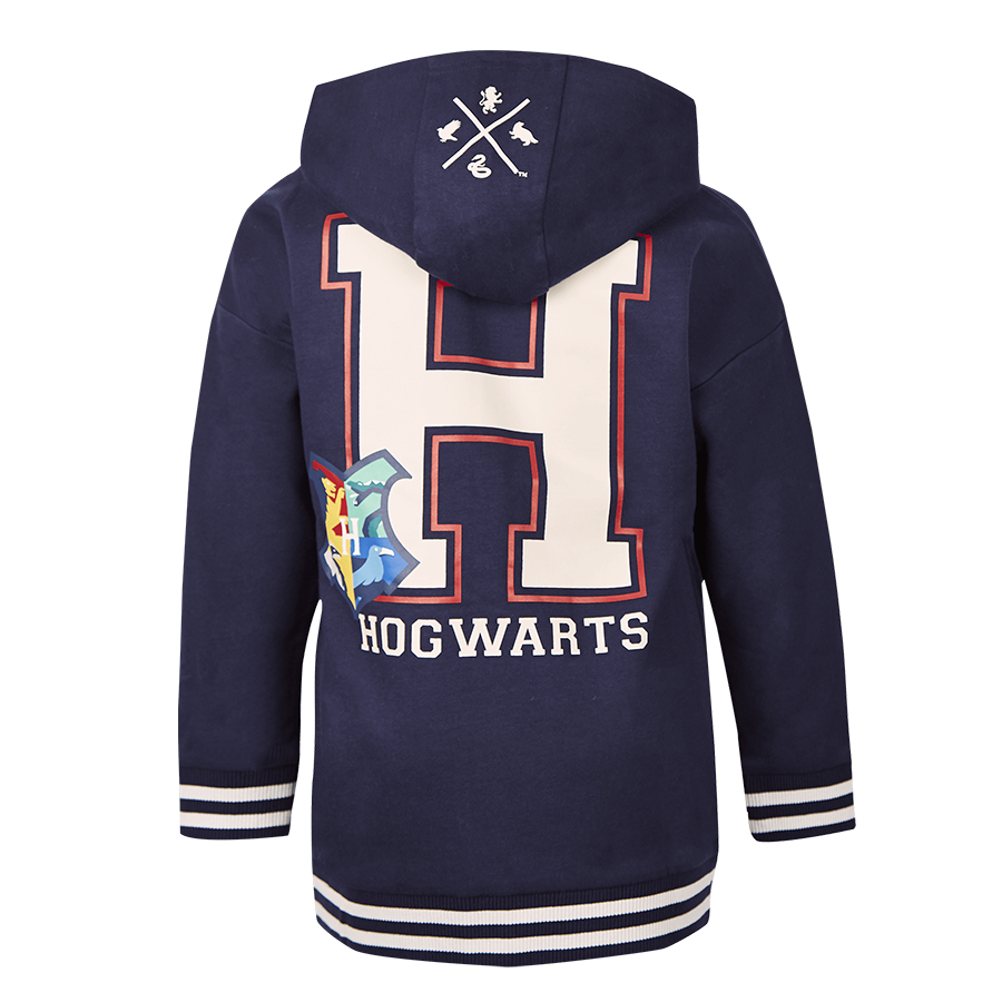 ホグワーツ ジップ付き パーカーで小さな魔女、魔法使いのホグワーツ入学の準備をしましょう!このネイビーのパーカーはクラシックなホグワーツスタイルのデザインで、裾と袖口には2本の白のストライプをあしらいスポーティーに仕上げられています。目立った特徴は左...詳細を表示する