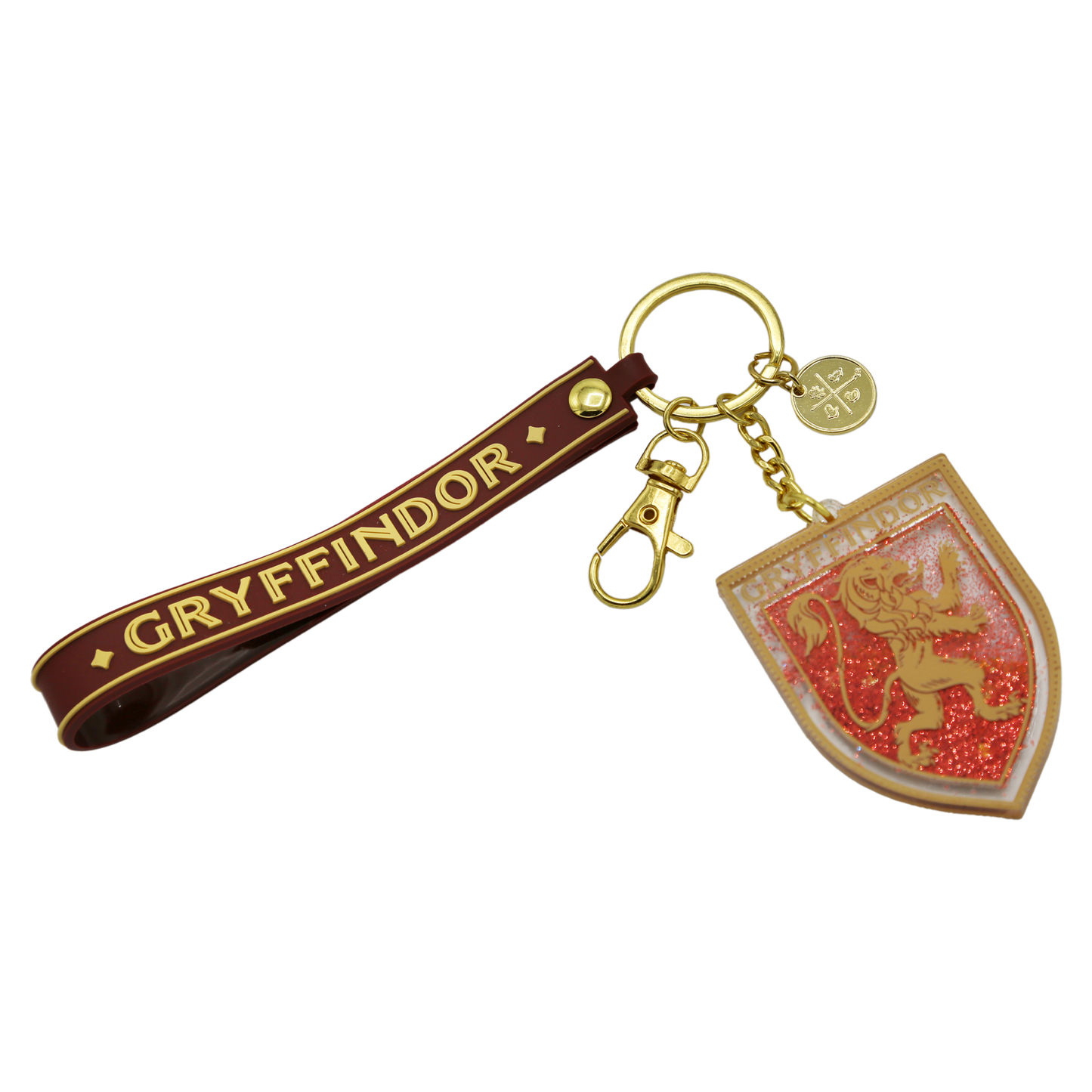 幅 6cm、高さ 4.5cm のシールド型のチャームには、寮名の下に力強く立つグリフィンドールのライオンの、ハウスマスコット コレクション限定デザインがあしらわれています。深紅のラバー ストラップに取り付けられた「Gryffindor」という名前は、金色のカリグラフィ フォントでエレガントにプリントされています。ゴールド トーンの金具には、安全なロブスター クロー留め具が付いており、公式の十字架のロゴがあしらわれたハリー・ポッター ショップのチャームが付いています。