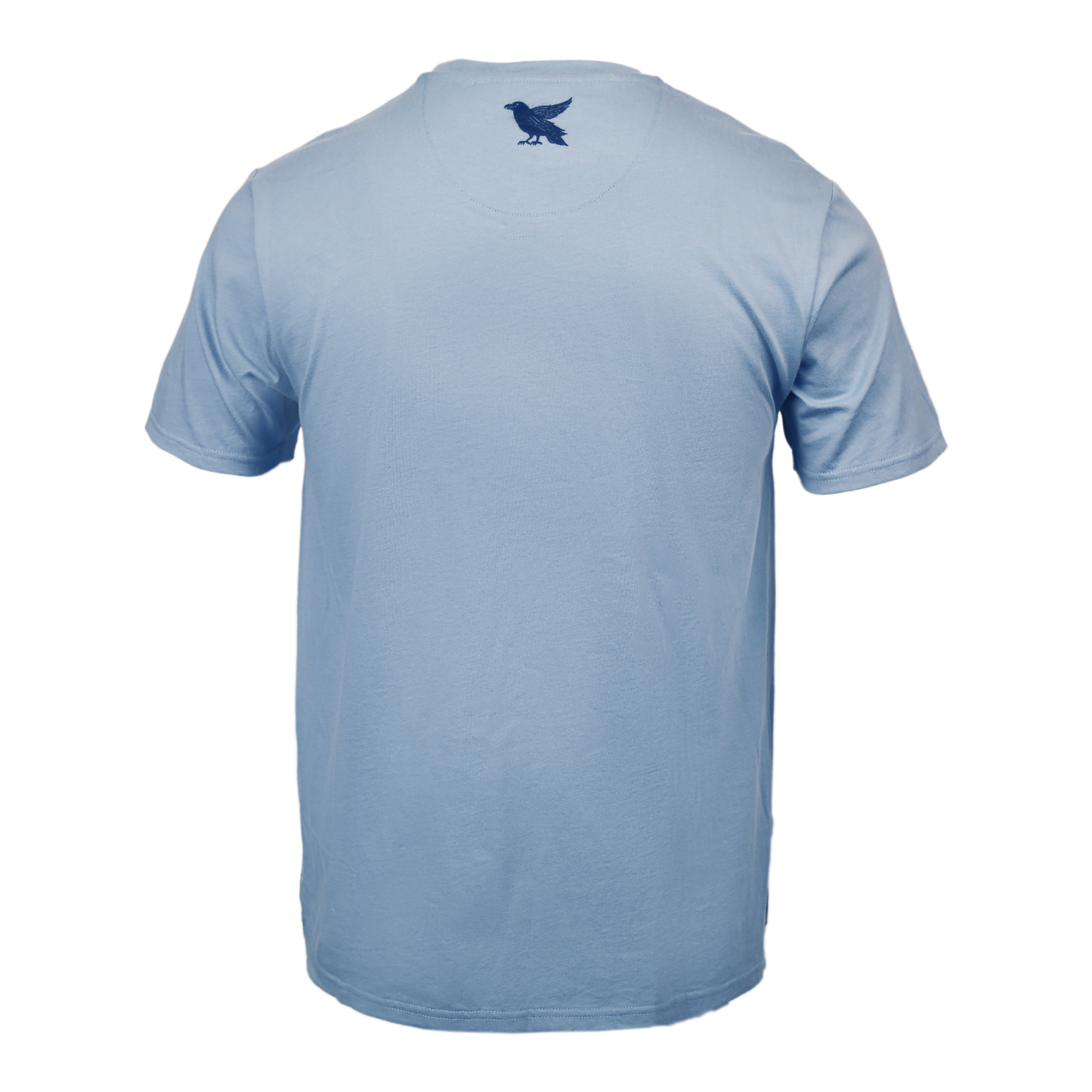 落ち着いたベビーブルーの色合いの 100% コットンで作られたこの非常に快適な T シャツは、クラシックなクルーネックとゆったりとしたフィット感を特徴としており、普段着に最適です。フロント左胸には、深いネイビーの刺繍で「R」とレイブンクロー寮名がさりげなく施され、背中上部には象徴的なワシのマスコットが印象的なシルエットで描かれています。寮のスピリットをさらに強調するために、右裾の下部には控えめな寮の特徴タグが縫い付けられています。