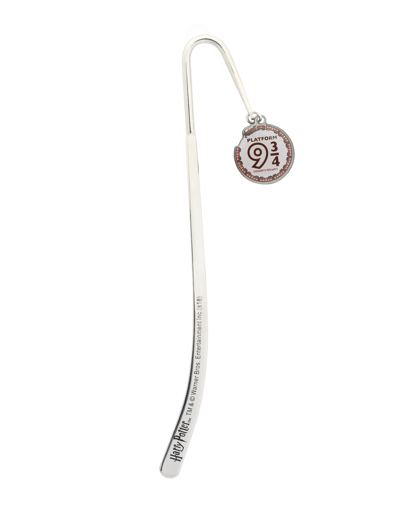 列車の長旅に持っていきたい銀メッキ仕上げのしおりです。ホグワーツ鉄道のチャーム付き。長さ約14㎝。