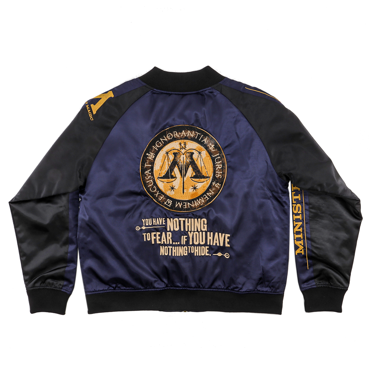 ネイビーとブラックのコントラストに、ゴールドの紋章。魔法省(Ministry of Magic)の象徴的なエンブレムとメッセージ“You have nothing to fear… if you have nothing to hide.”を大胆にあ...詳細を表示する