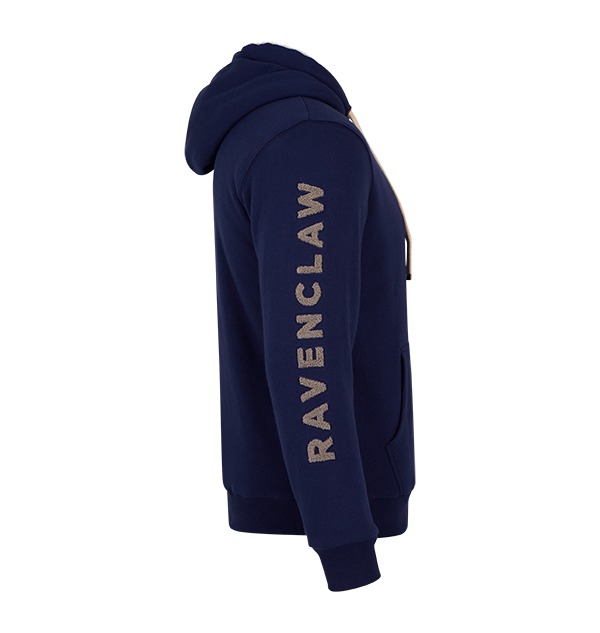 寒い季節にぴったりな、レイブンクロー寮のフリースパーカー。落ち着いたネイビーブルーのボディに、胸元には知性を象徴する白い鷲の刺繍をあしらい、袖にはライトグレーのフォントで「Ravenclaw」の寮名をプリント。さらに背後には寮のモットー 「知識」「機知」「英知」 が刻まれ、レイブンクローの精神を日常にまとえます。