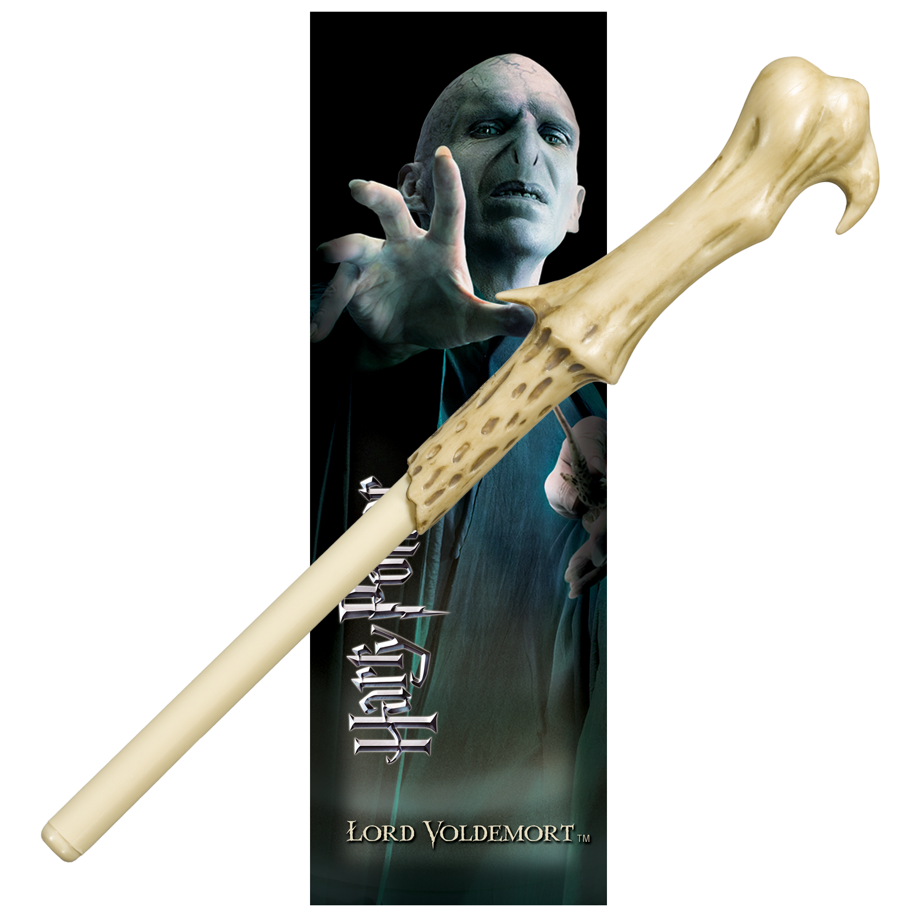 ヴォルデモートのワンド型ペンセット。ミニチュアサイズのヴォルデモートの杖をかたどったペンで、日常の筆記に魔法のひとときを添えられます。さらに、映画『ハリー・ポッター』シリーズに登場するヴォルデモートの写真がデザインされた美しいしおりも付属。次の魔法の物語を読み進める際に、ページをしっかりとマークしてくれます。
